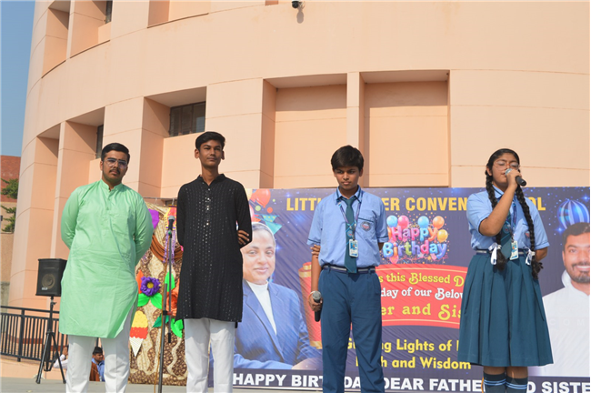 Little Flower School celebrated the birthdays of Rev. Fr. Lawrence Benedict and Sister Mary Lavania on 17th October with great joy and enthusiasm. The celebration included prayers, a welcome song, Qawwali, dances, and birthday songs presented by students. On this occasion, the school also bid a heartfelt farewell to Manu Ma’am, who devoted 14–15 years of dedicated service to the institution. The event concluded with words of gratitude from Father and Sister, making the day truly special for the entire Little Flower family